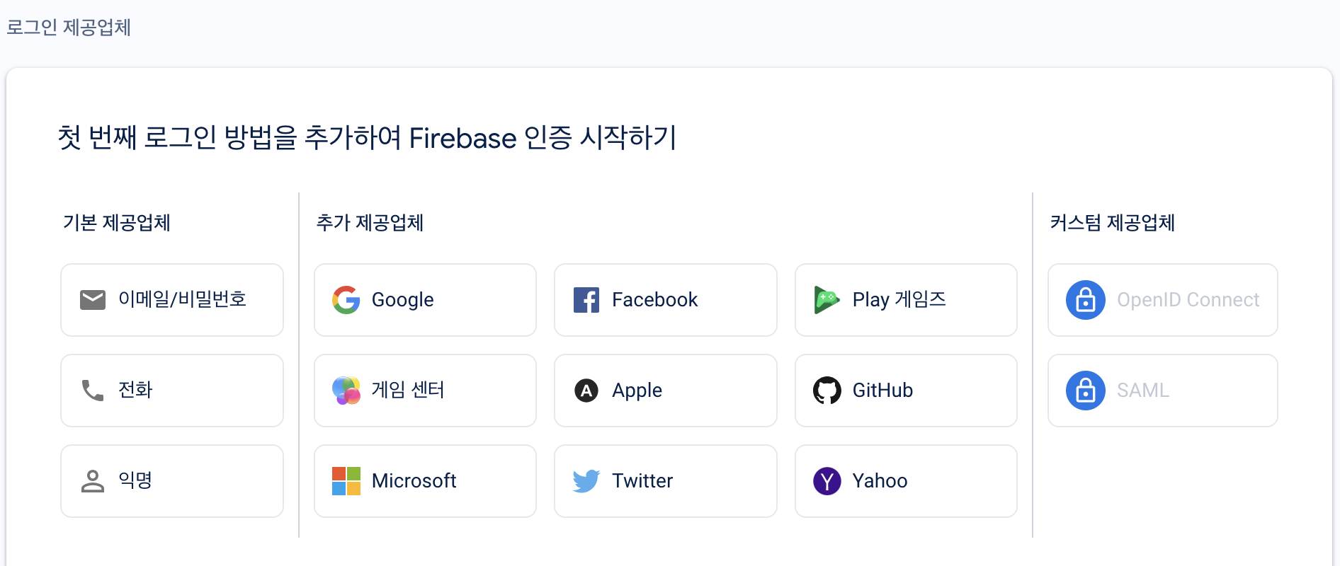 우리는 일단 이메일/비밀번호로 해볼 것이다.