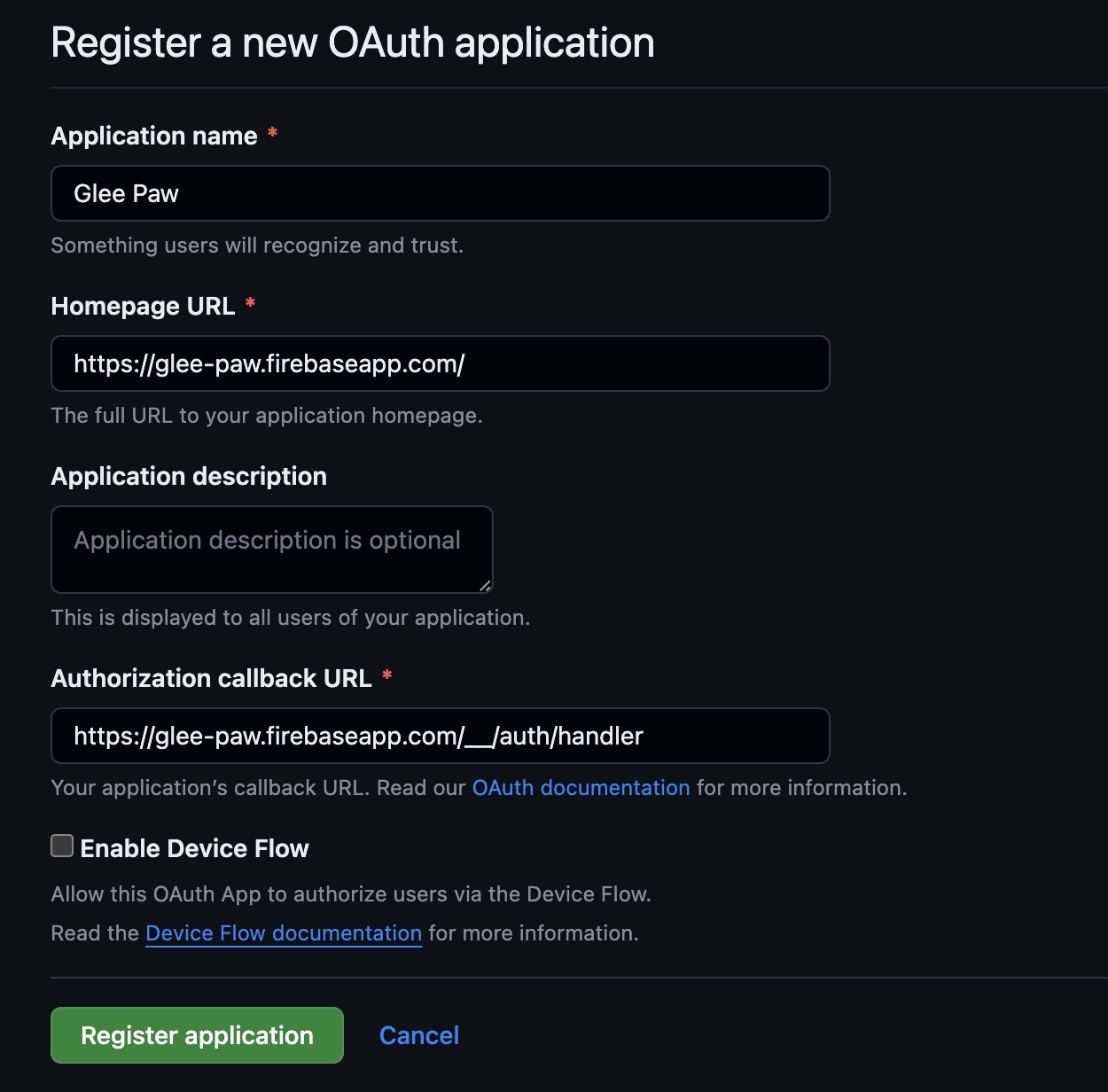 그리고 Authorization callback URL에 위의 전체 url을 넣는다.