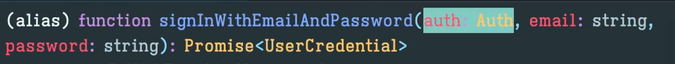 로그인 함수에도 역시나 firebase.ts에서 선언한 auth가 필요하다.