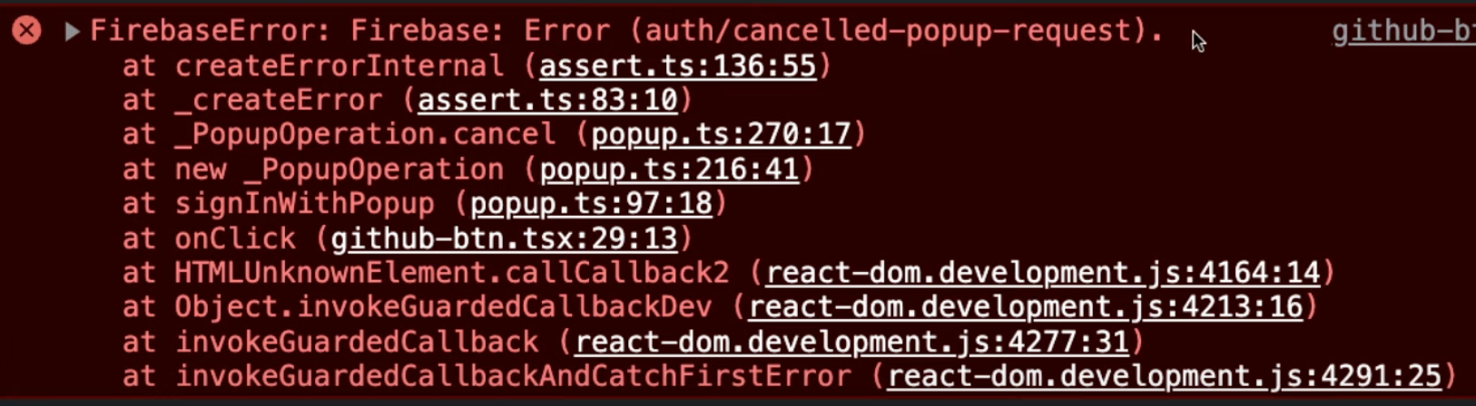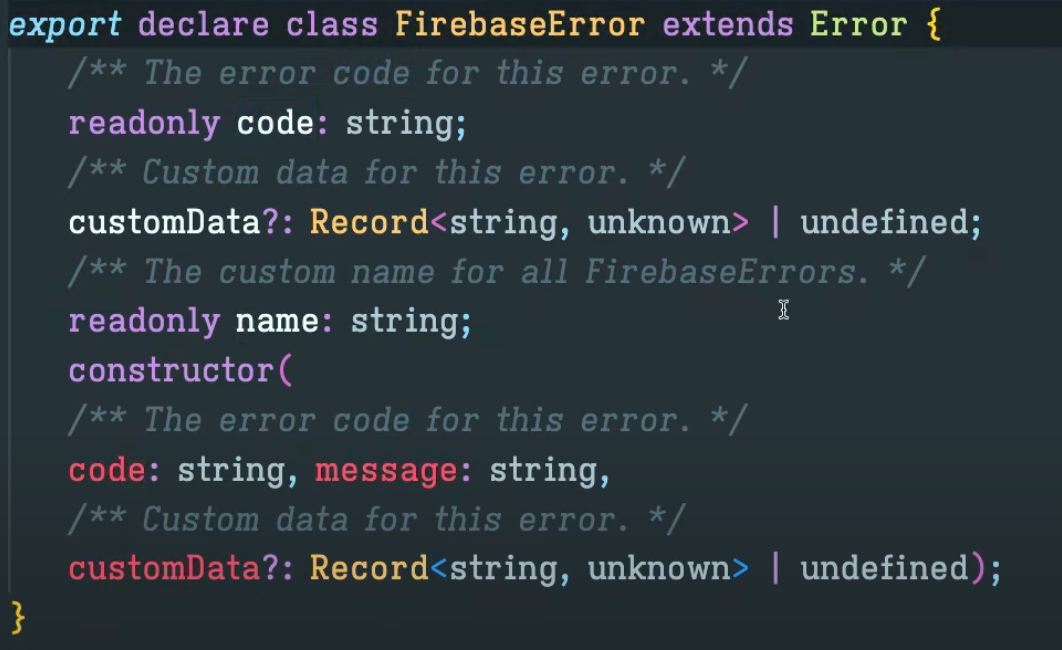 FirebaseError라는 것이 나오는데 firebase에서 제공하는 error이다.