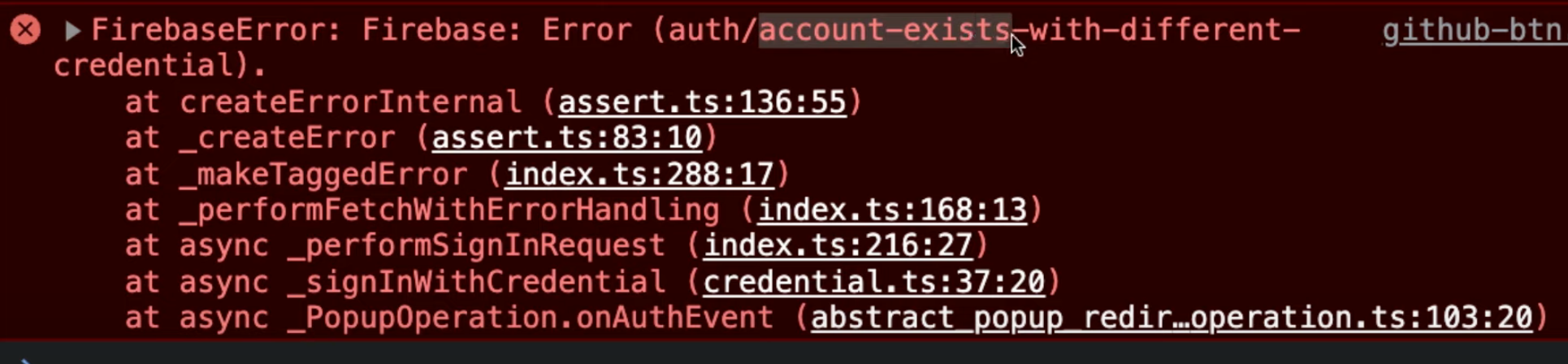 계정이 이미 존재하지만 다른 자격 증명을 사용하여 로그인을 시도한다는 오류이다,