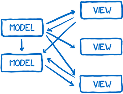 Model과 View는 데이터를 양방향으로 전달할 수 있는데, 애플리케이션의 구조가 커짐으로써 Model의 개수가 많아질수록 각 Model에서 발생한 이벤트가 애플리케이션 전체로 퍼져나갈 때 이를 예측하기가 어려워진다.
