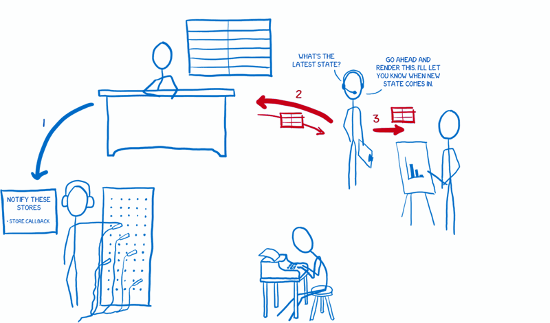 2. 그런 다음 컨트롤러 뷰는 매장에 최신 상태를 요청합니다.