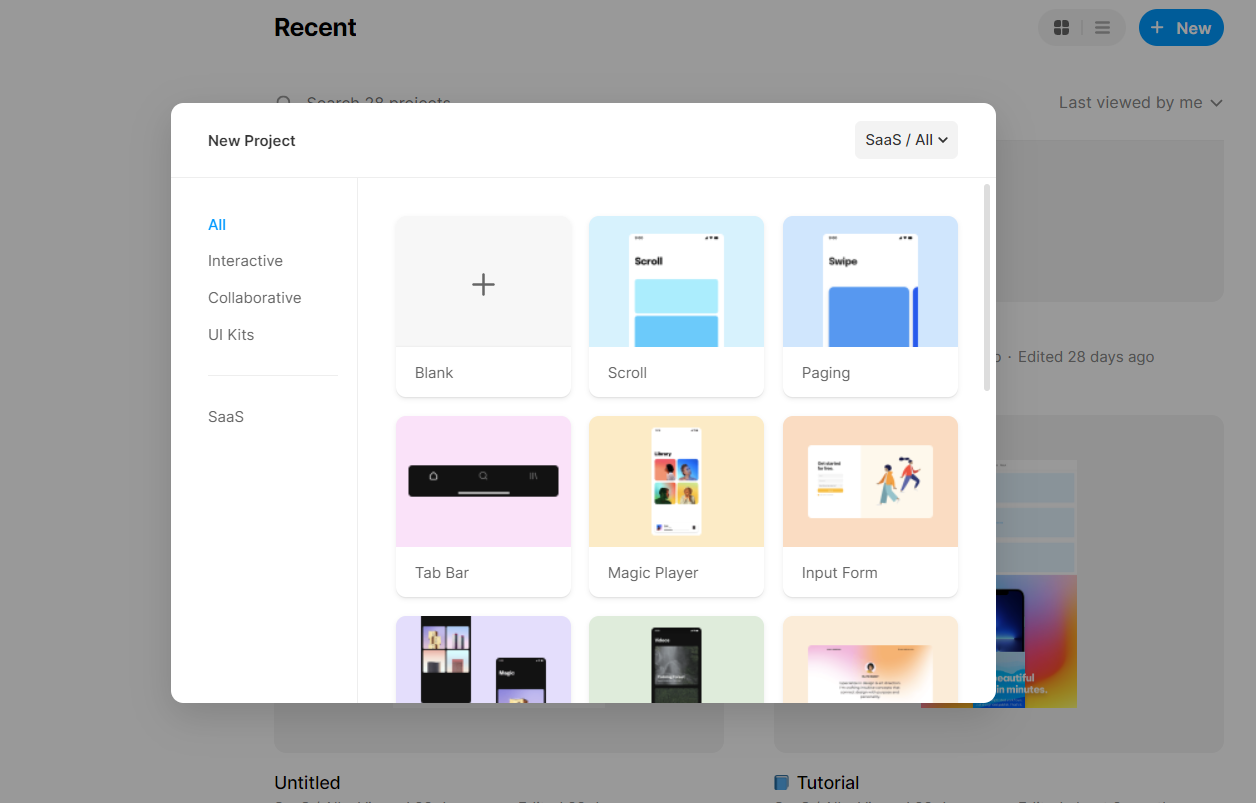 New 버튼을 누르면 새로운 프로젝트 생성 선택 팝업이 호출되고 여기서 본인이 하고싶은 유형을 선택하면 된다.