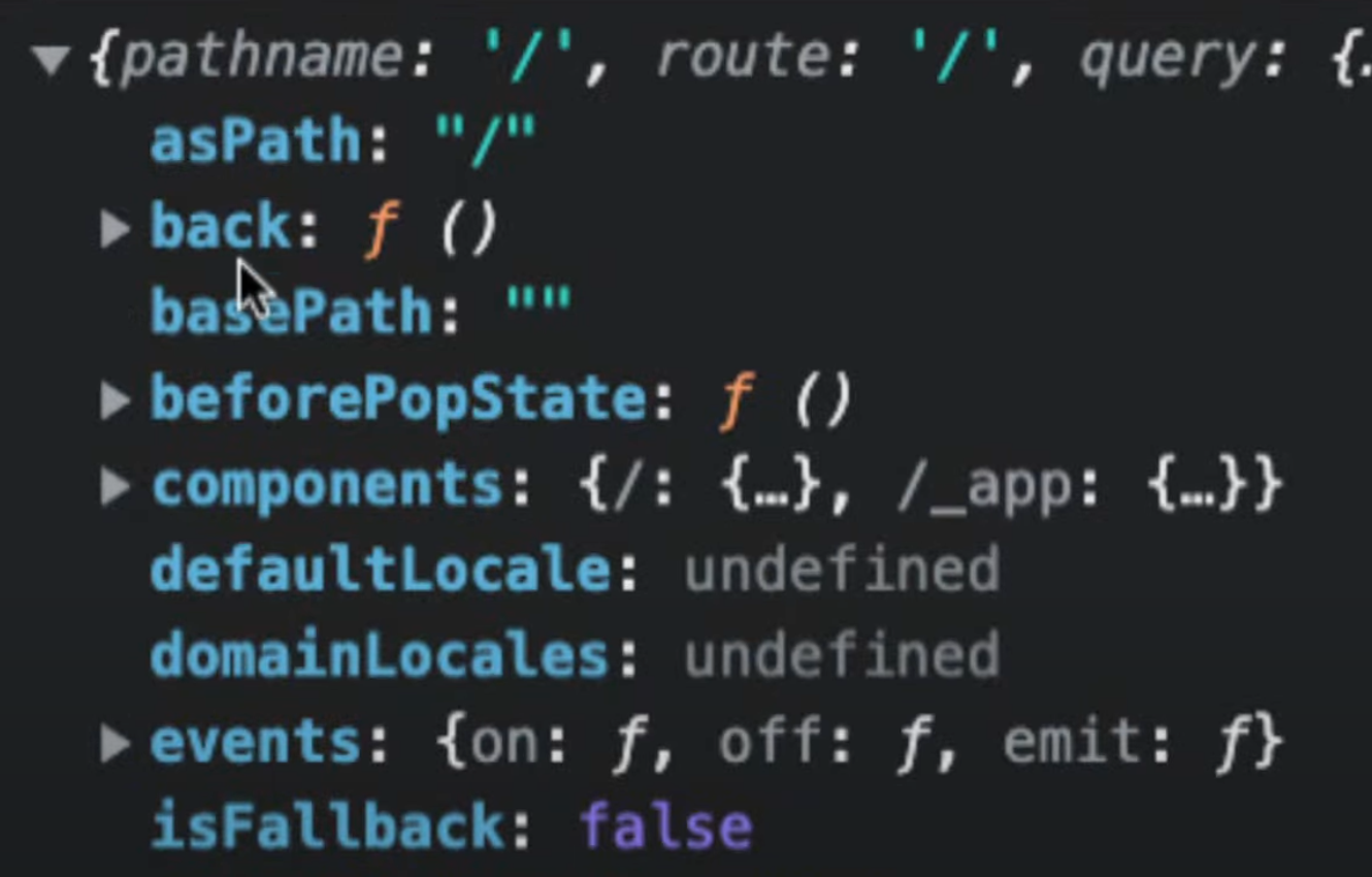 asPath, back, basePath, pathname같은 우리 location에 관한 정보들을 얻을 수 있다.