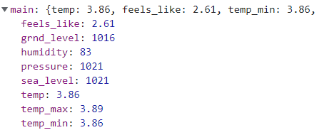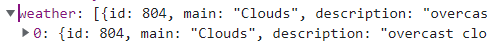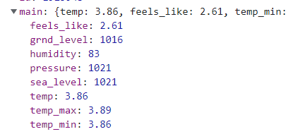 대괄호가 있는 걸 보면 weather은 배열이며, 배열 0번째의 main에 날씨 정보가 있다.