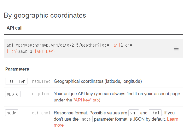 아까 API 사이트에서 call 주소 아래에 있는 Parameters를 살펴보자.