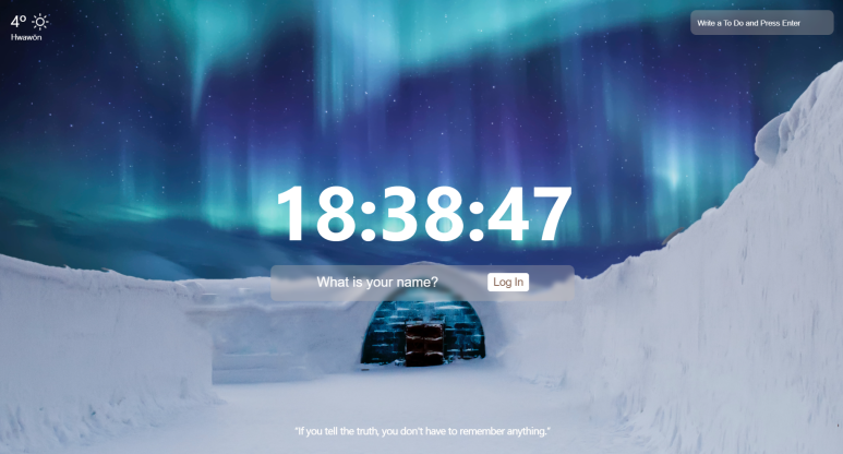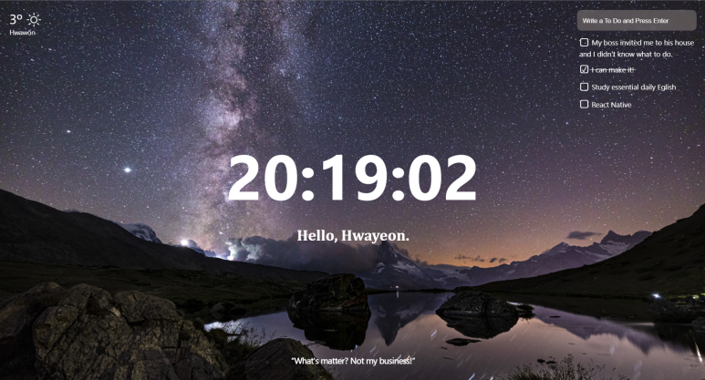 페이지 새로고침을 하면 배경화면과 아래의 명언이 새로운 것으로 교체된다.
