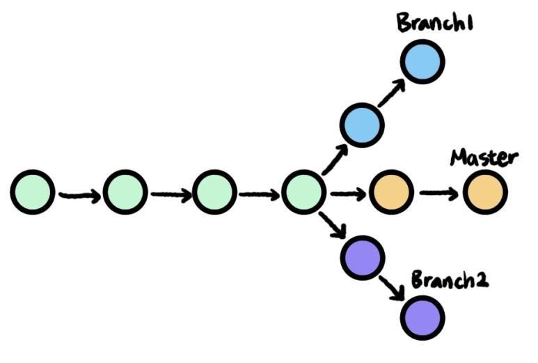 그림에서 보면 'Branch1'과 'Branch2'가 같은 commit에서 시작한다