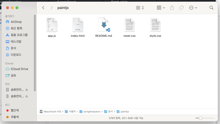 paintjs라는(내가 만든 repository)가 생성된 걸 볼 수 있다,
